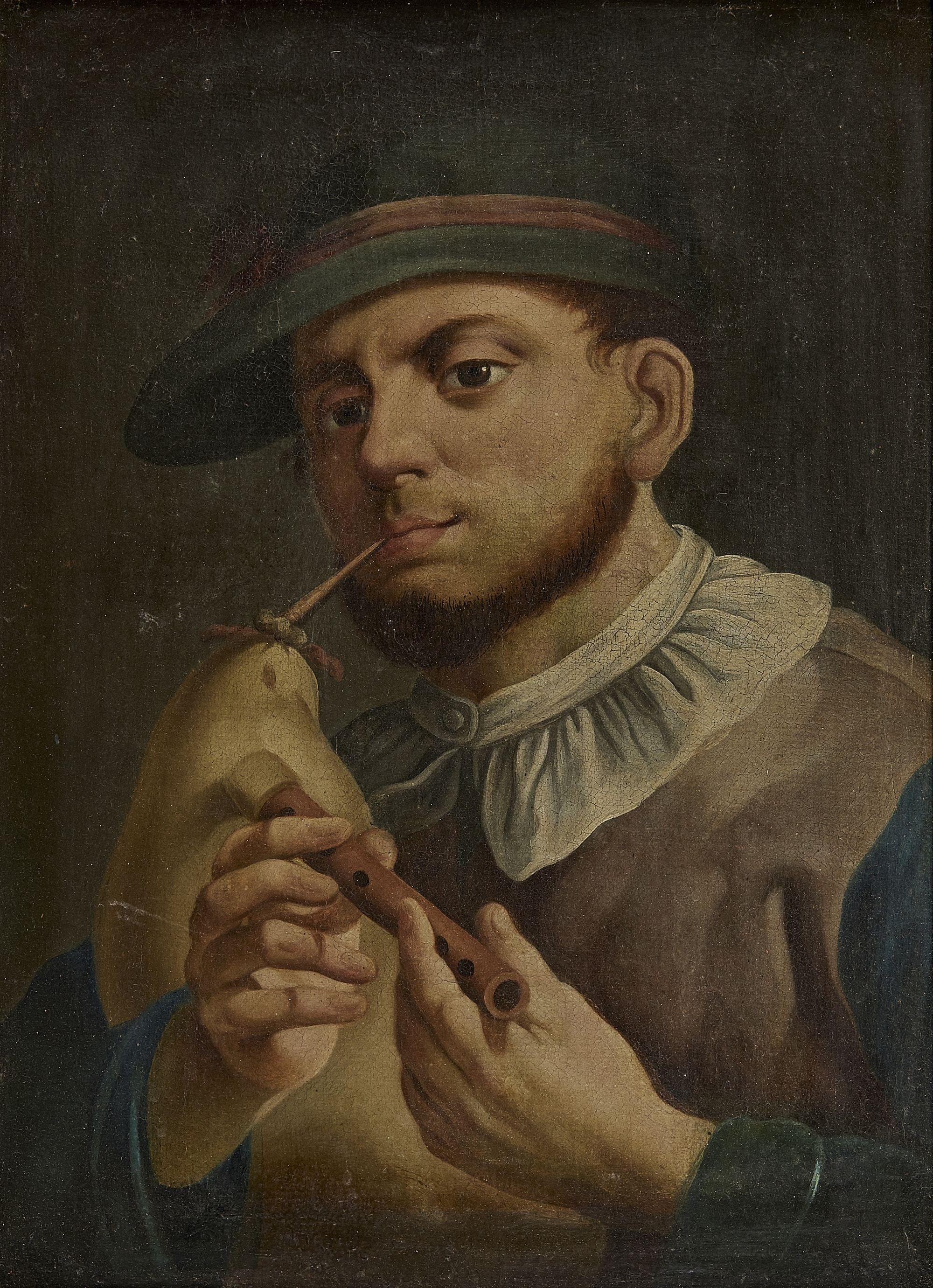 Le joueur de cornemuse, huile sur toile, 47x35 cm