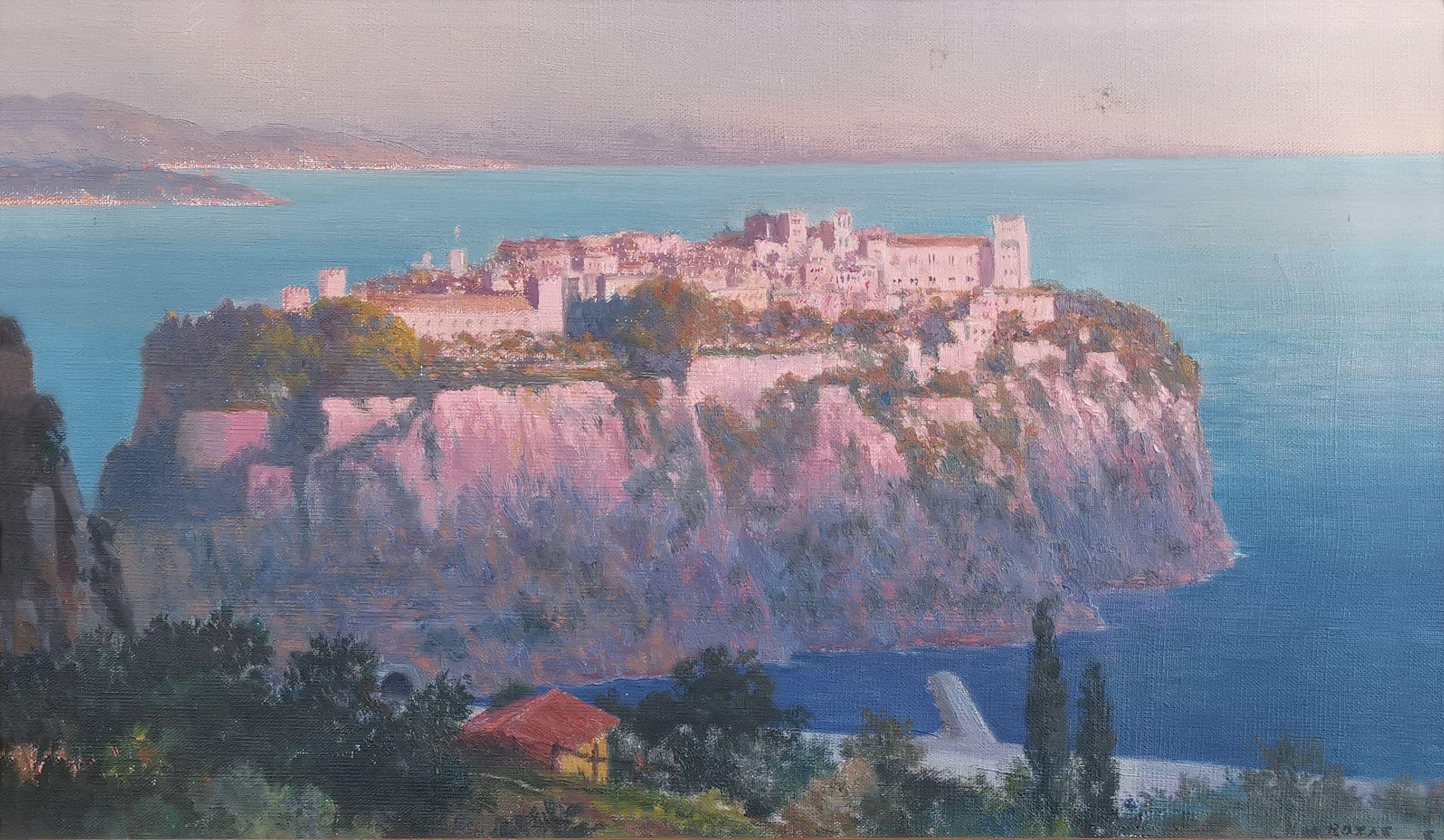 Village de bord de mer, huile sur toile, signée Roses, 31x53 cm