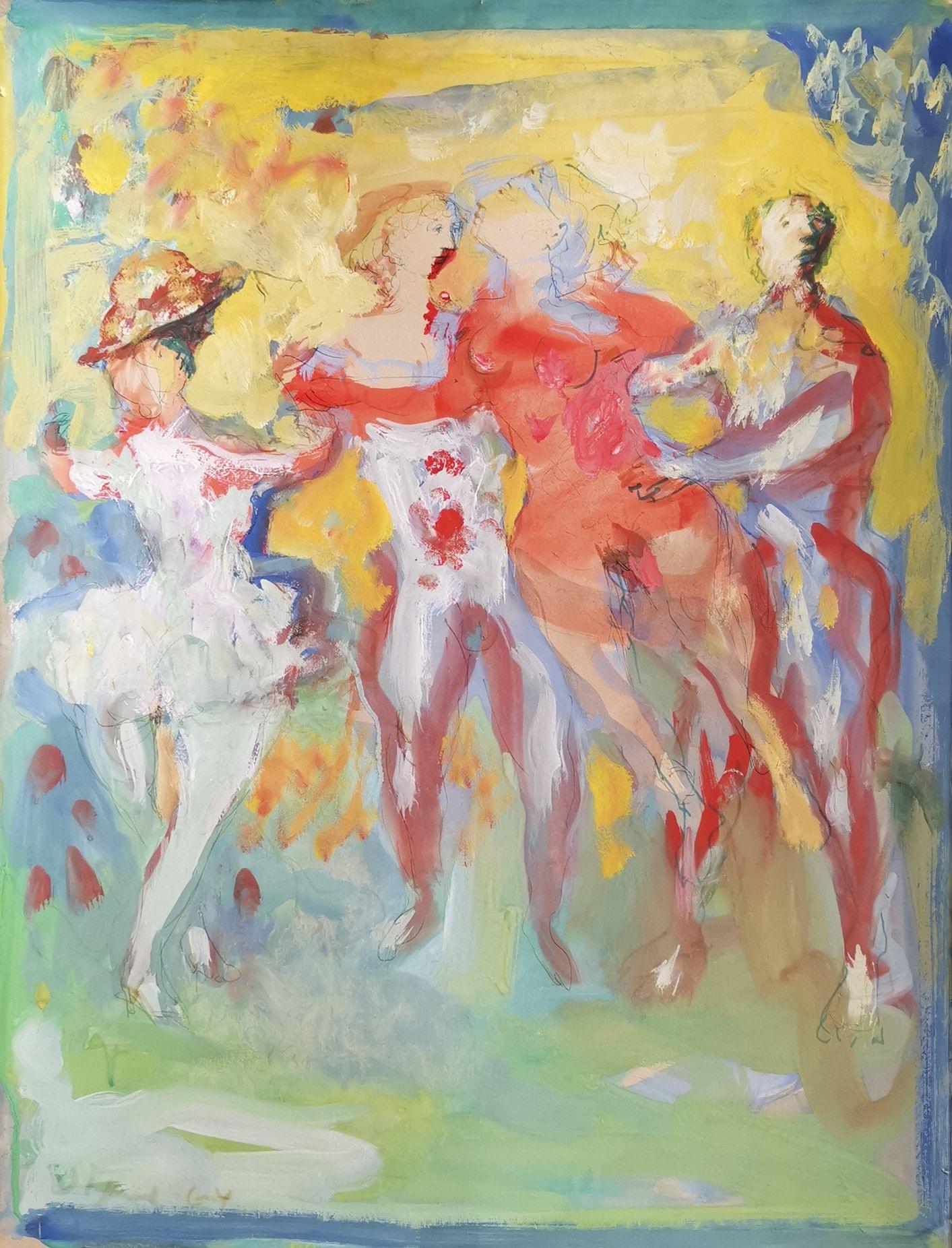 Danseurs nus, aquarelle sur carton, signature illisible, 66x50 cm
