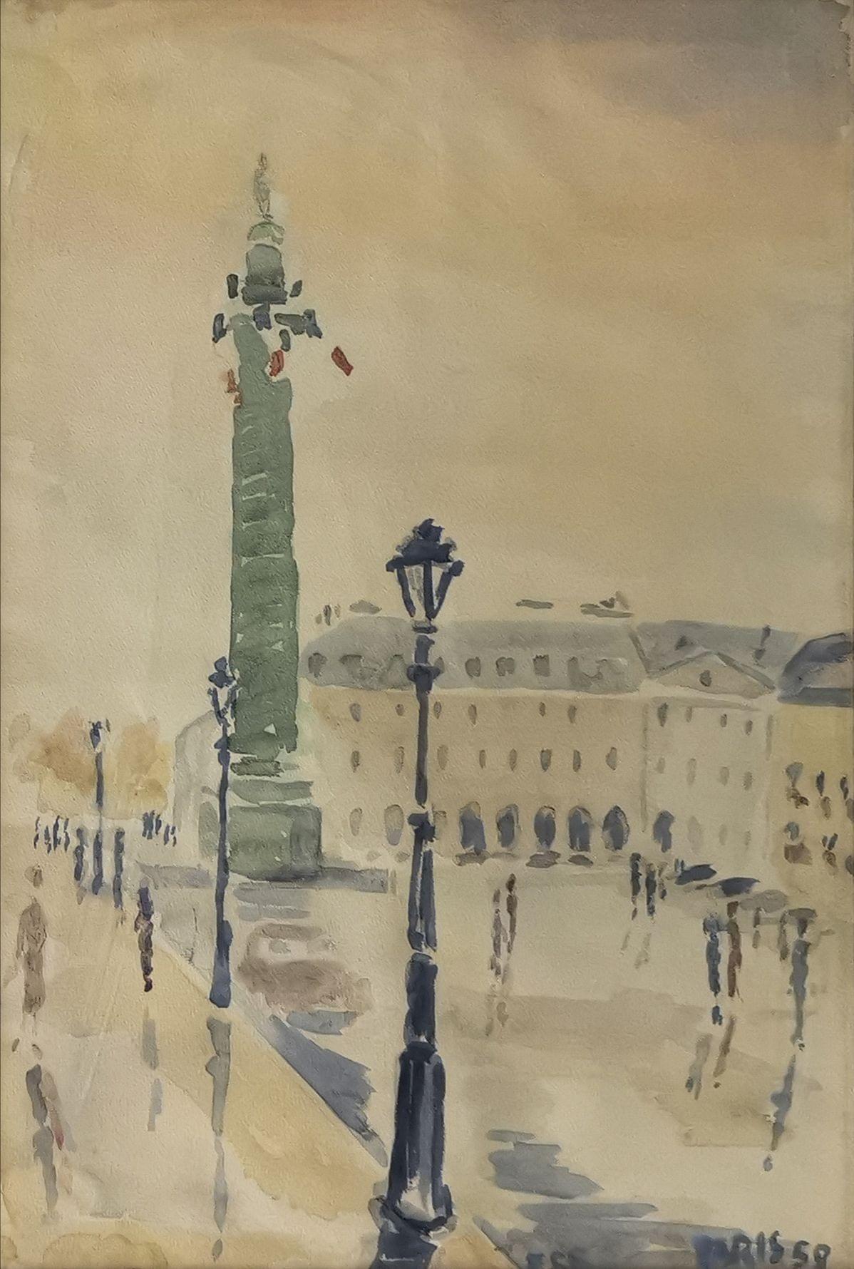 Place Vendôme, Paris, aquarelle, monogrammée et datée 59, 50x33 cm