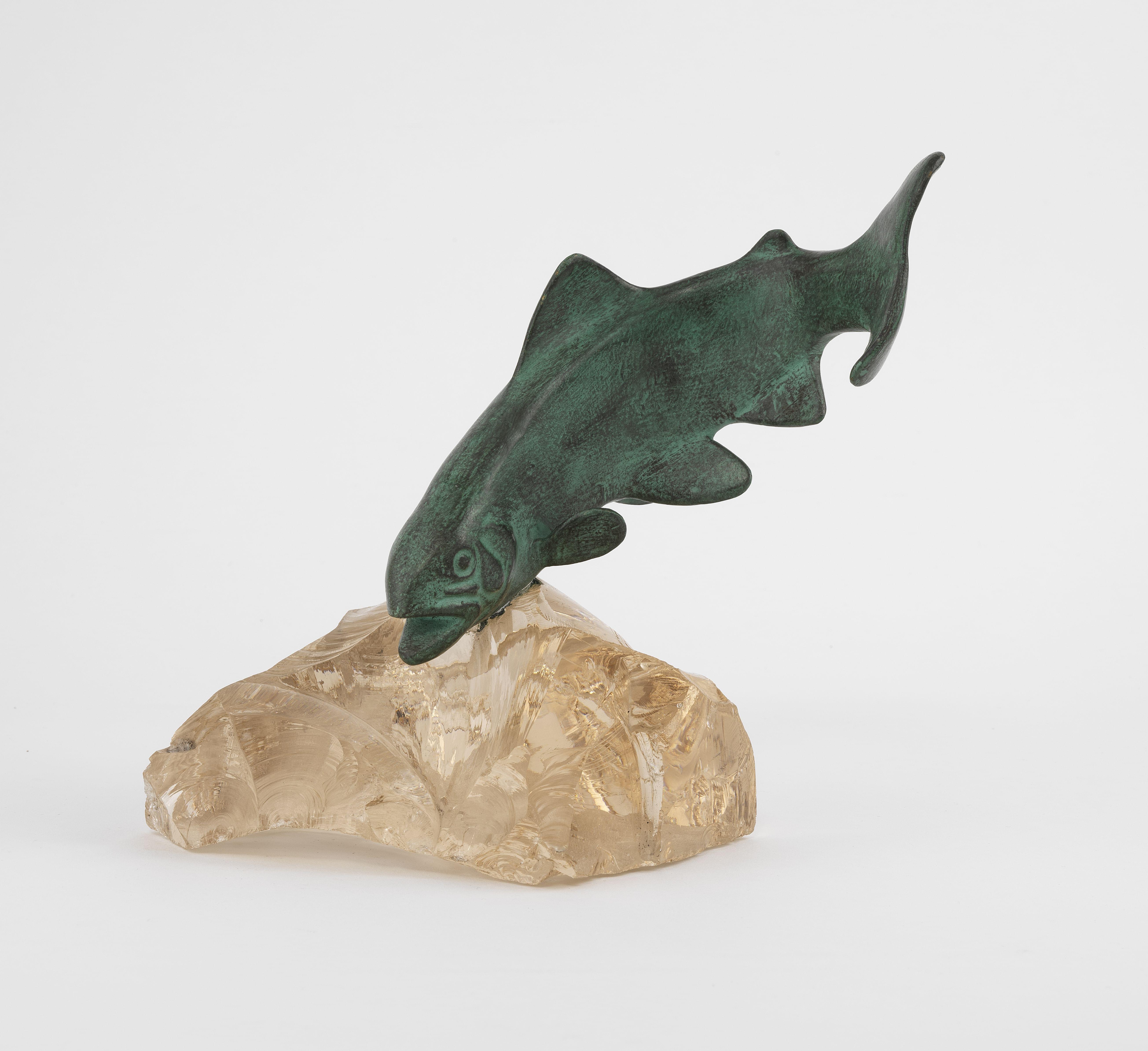 Poisson, bronze à patine verte, signée Balbaud, L 18 cm