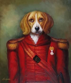 Paire de portraits cynocéphales, huiles sur toile, signées, 61x50 cm