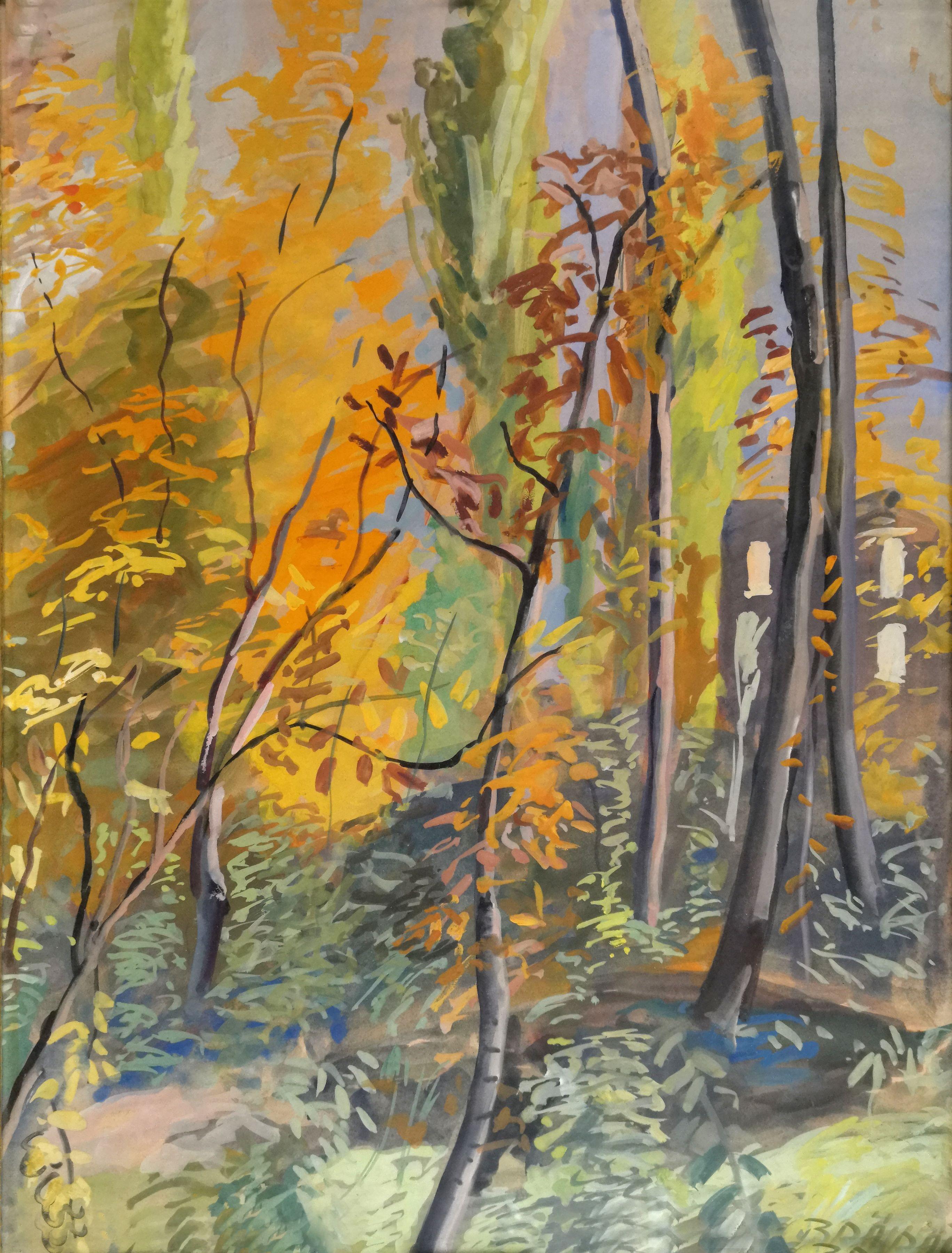 Ruine dans les bois, aquarelle sur papier, signée Bräuer, 52x40 cm