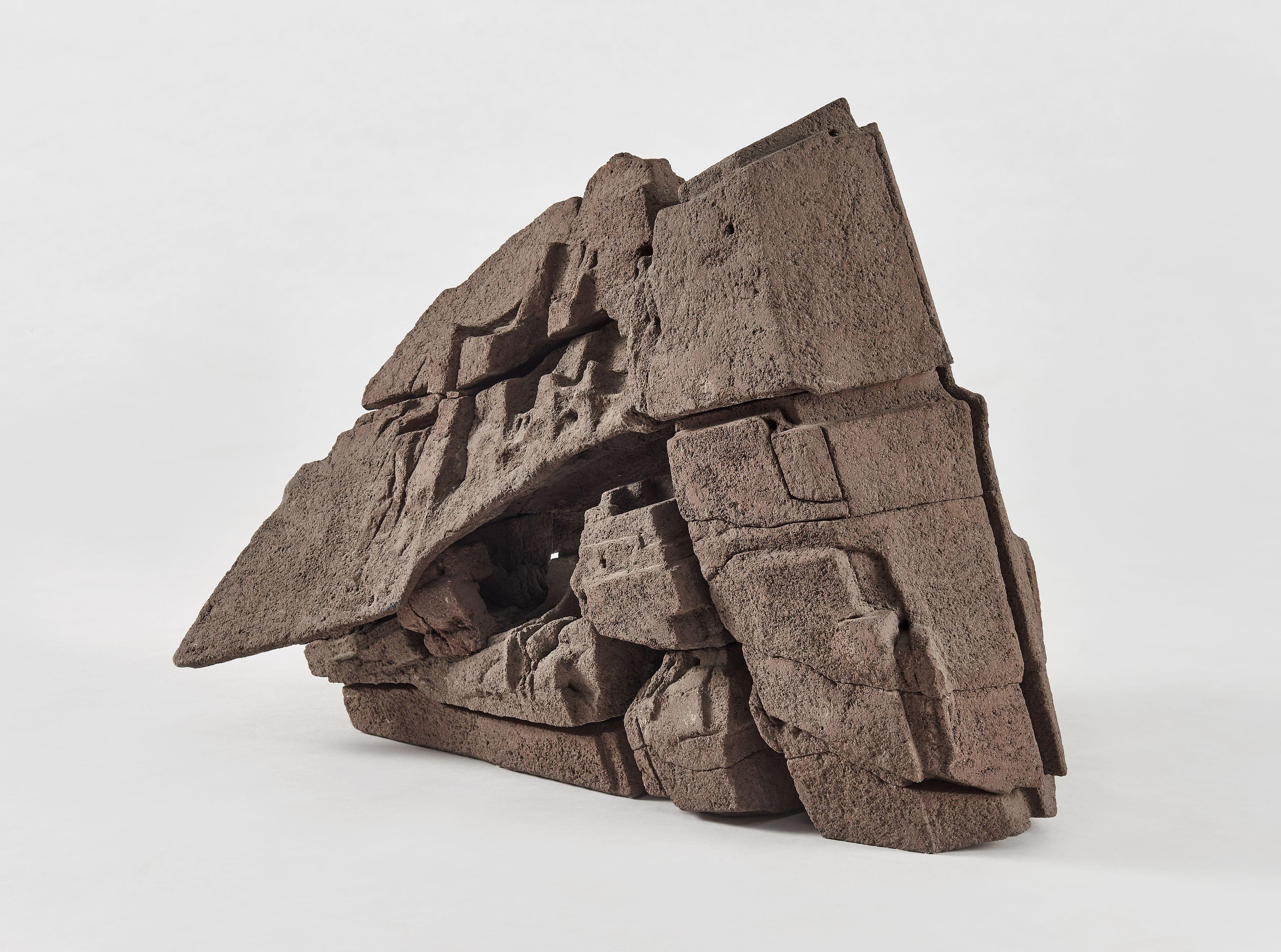 Composition abstraite, volume composé de dix éléments en céramique, 50x75x27 cm
