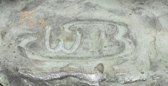 Cheval de trait, bronze à patine verte, monogrammé WB et numéroté 7/29, 27x24x11 cm