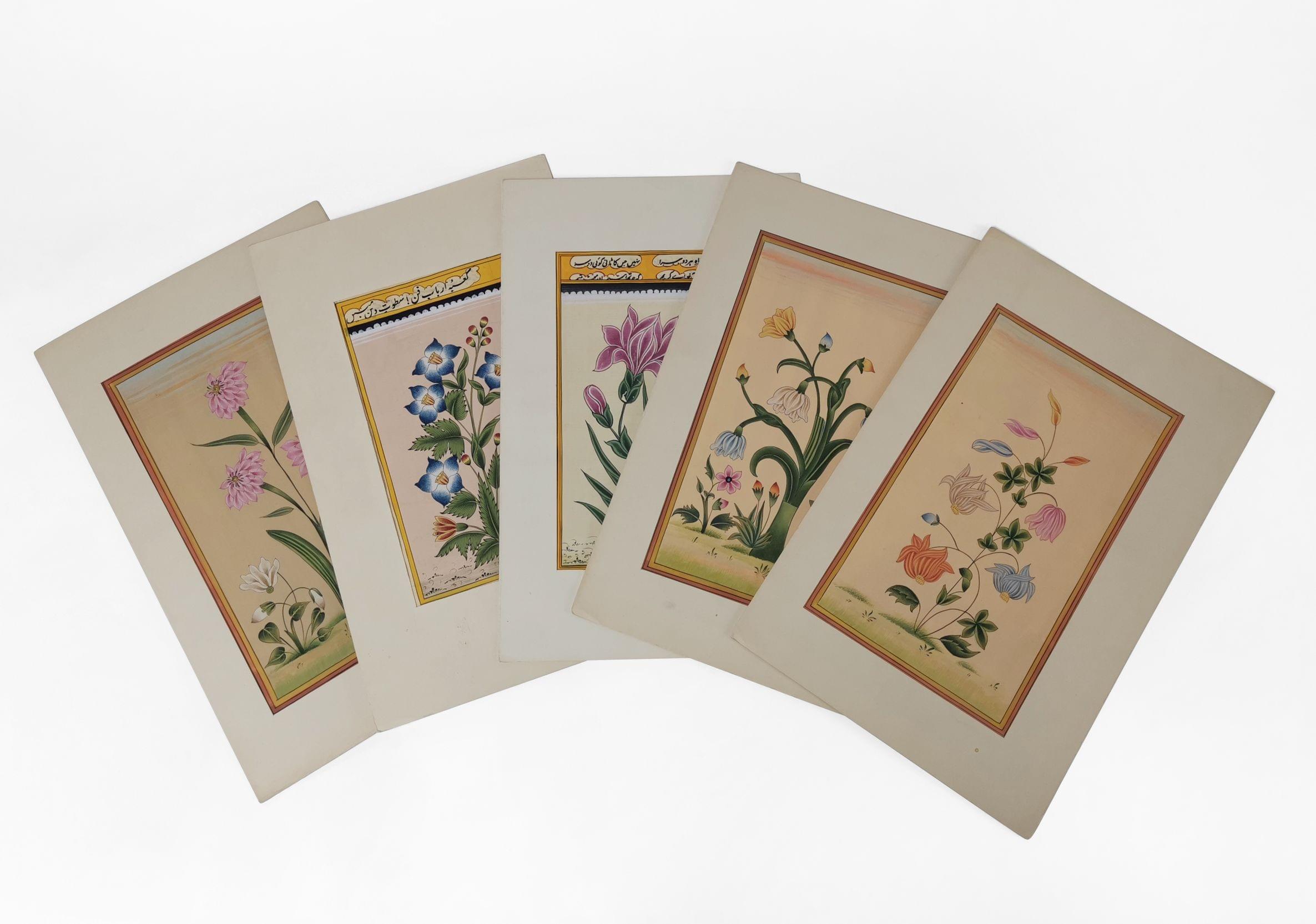 Fleurs, cinq planches de botanique, gouache sur papier, 18x10 cm