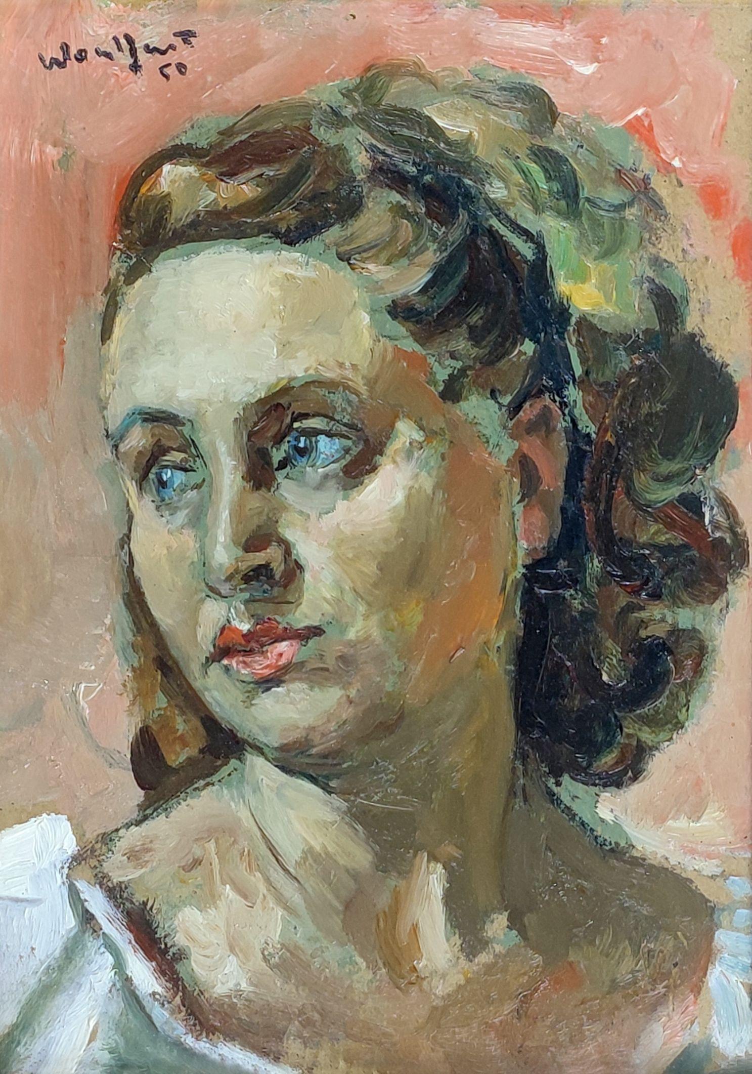 Portrait de femme, huile sur carton signée et datée 50, 33x23 cm