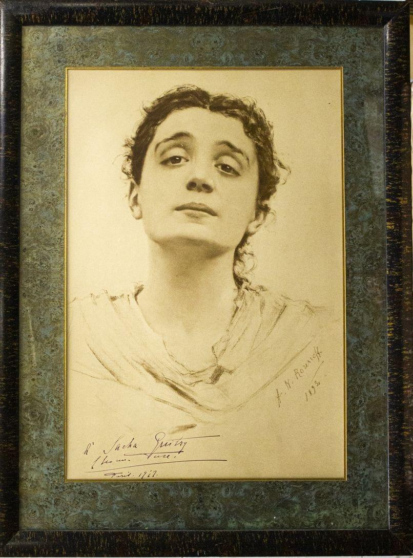 Portrait de Eleonora Duse, estampe, dédicacée à Sacha Guitry, signé et daté 1912, 48x32 cm