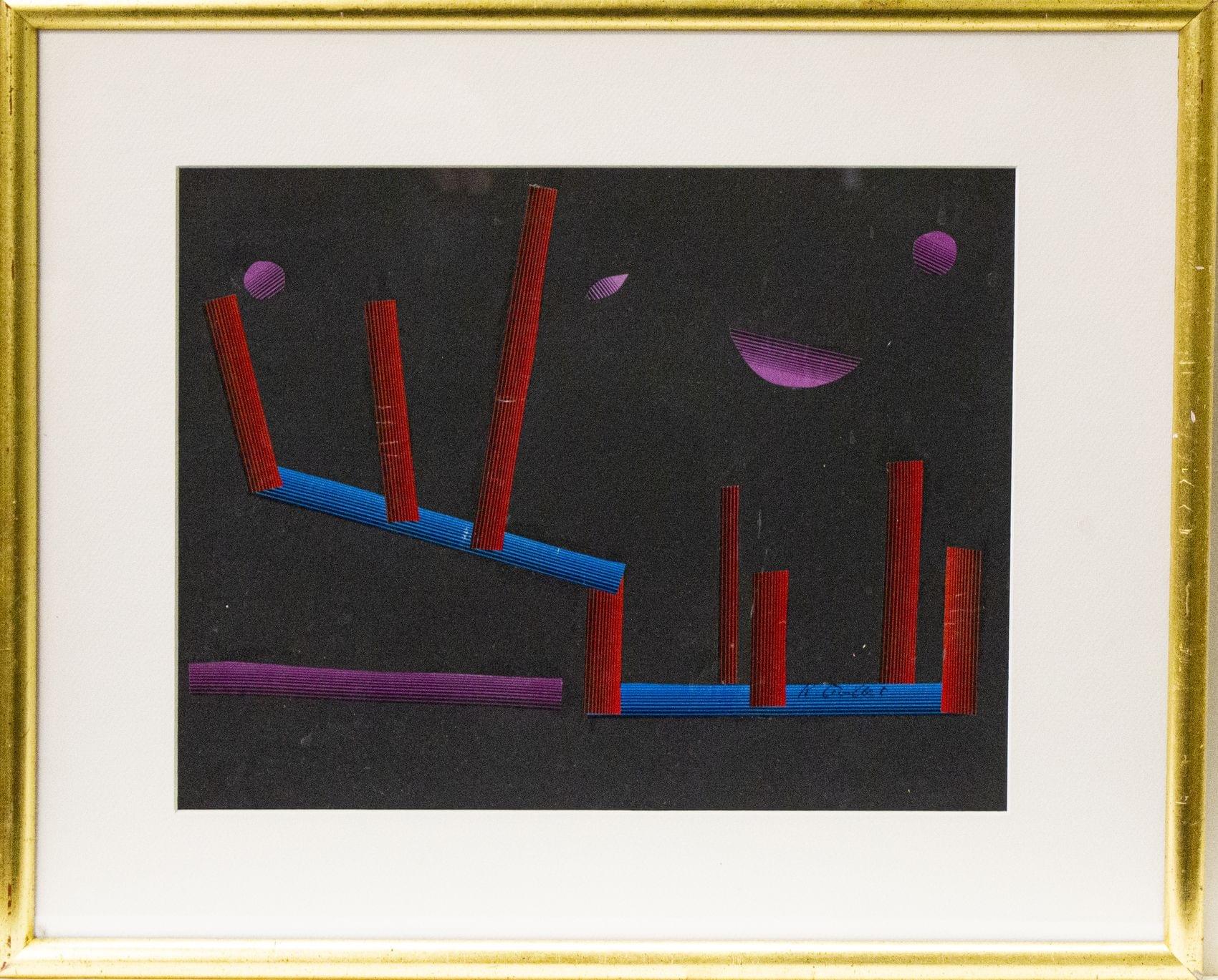 Abstraction spatiale, collage, signé R. Troillet, 25x32 cm