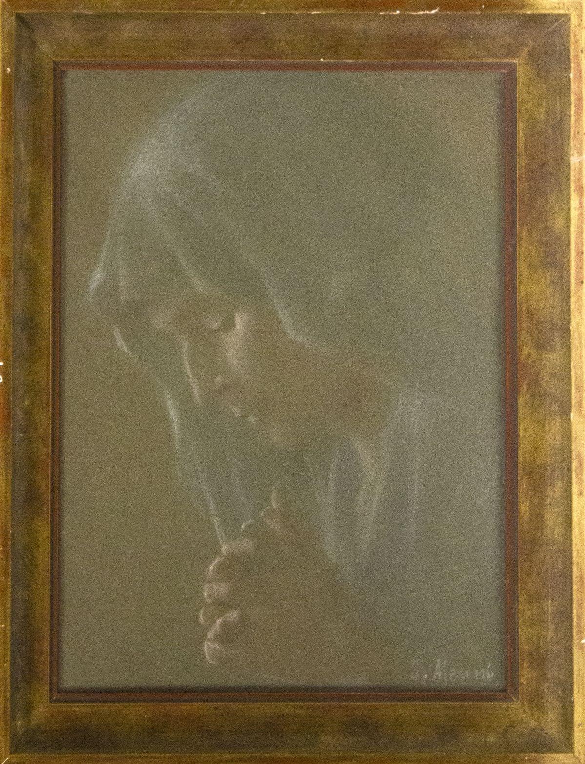 La Vierge en prière, pastel sur papier, signé J. Menné, 27x20 cm