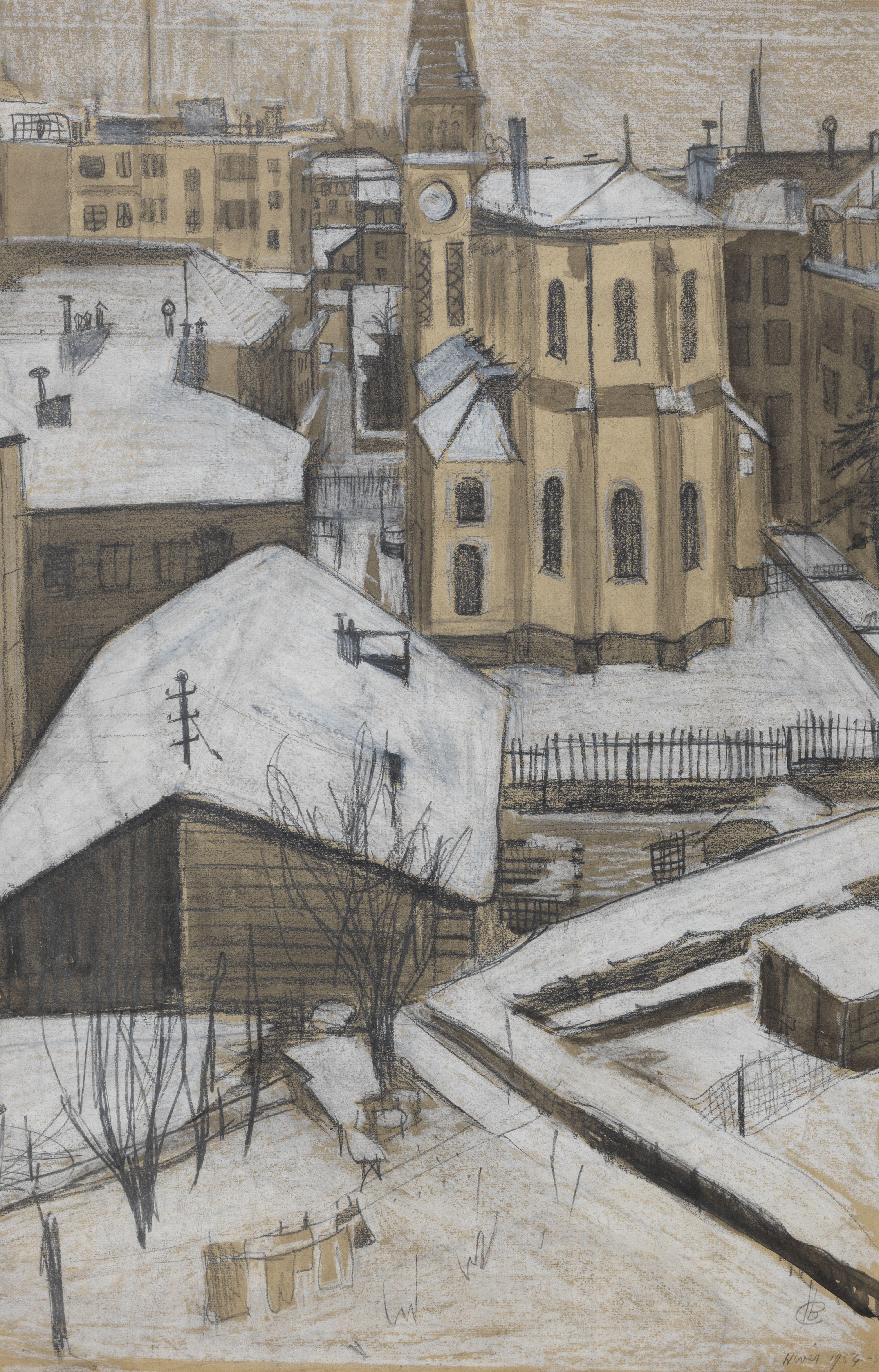 Hiver 1954, pastel et fusain sur papier, monogrammé, 63x41 cm