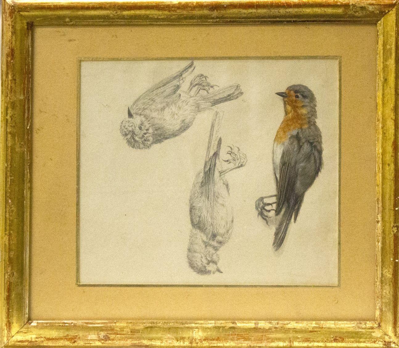 Etude de rouge-gorge, mine de plomb et crayon de couleurs sur papier, 20x18 cm