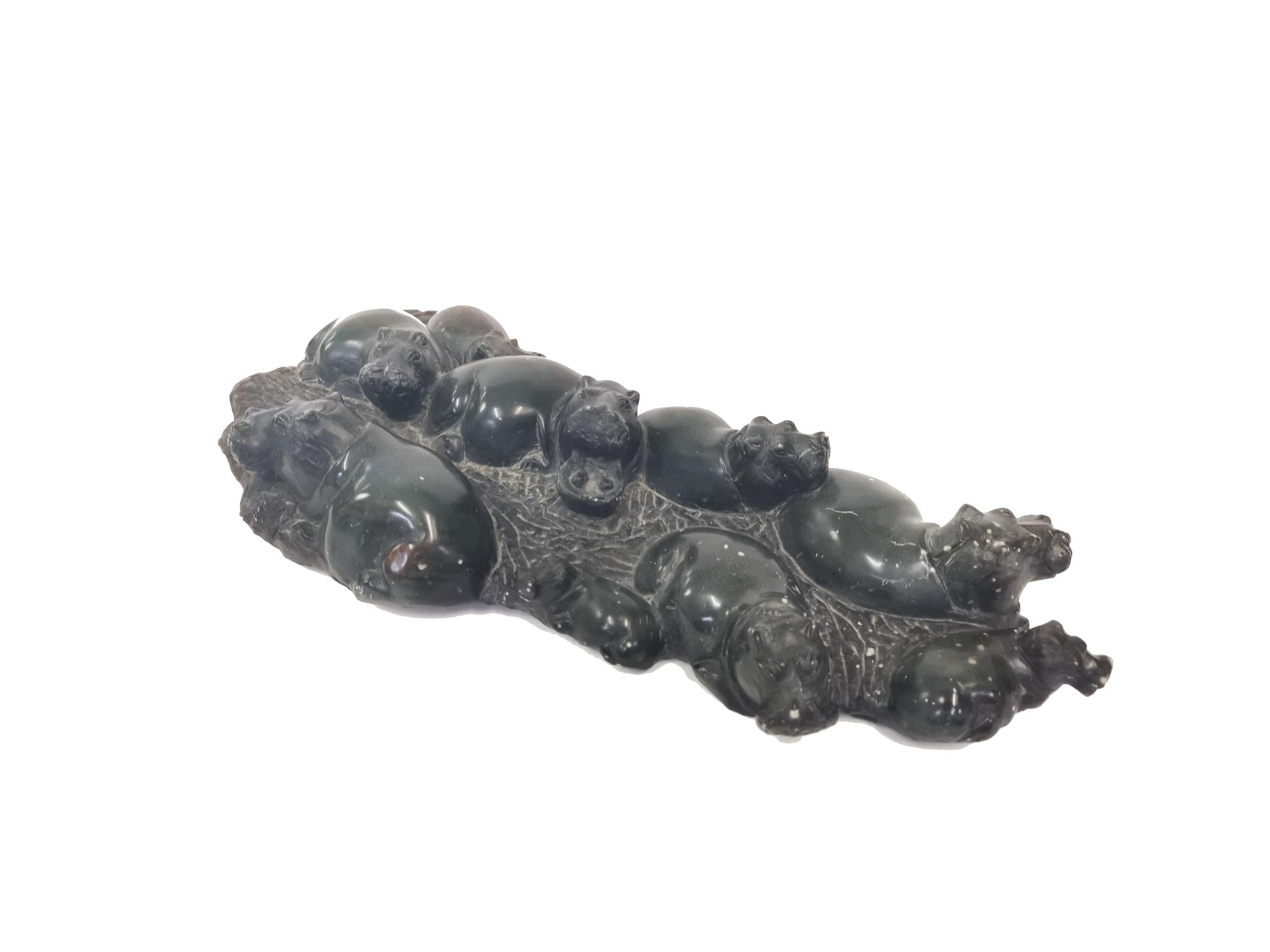 Groupe d'hippopotames, pierre sculptée, L 45 cm