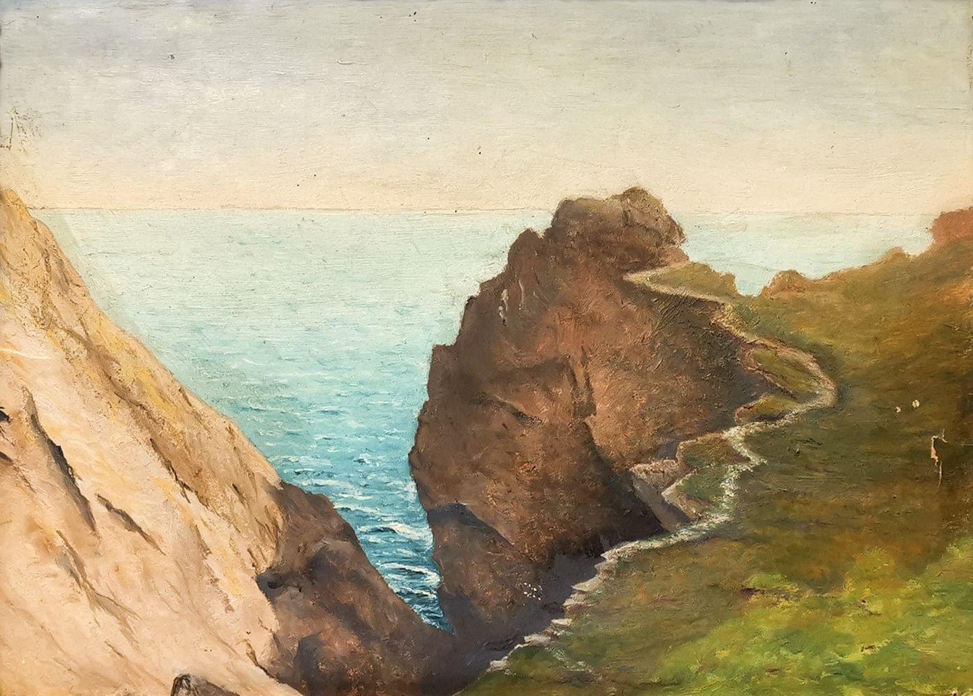 Falaises en bord de mer, huile sur carton, 26x35 cm