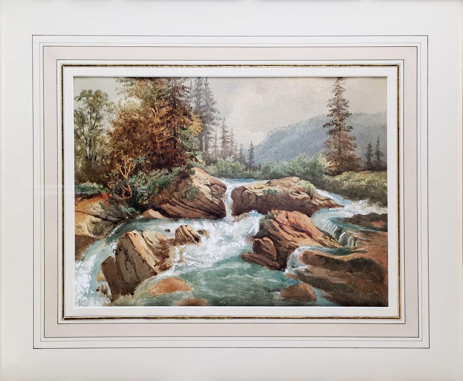 Torrent de montagne, aquarelle sur papier, signée S. Buren, 26x35 cm