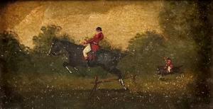 Scènes de chasse, paire d'huiles sur panneaux, 10x18 cm