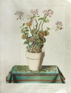Fleurs en pot, paire d'aquarelles sur papier, signées Jeanne Charachon et dédicacées, 35x45 cm