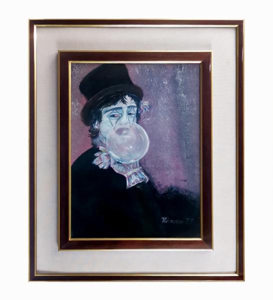 Clown, huile sur toile, signée et datée 88, 35x26 cm