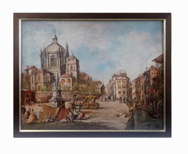 Vue de Venise, huile sur panneau, signée, 30x40 cm