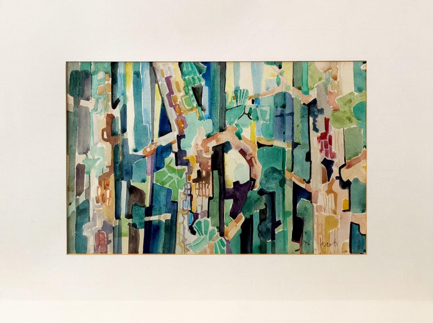 Abstraction, aquarelle sur papier, signée et datée 76, 18x28 cm