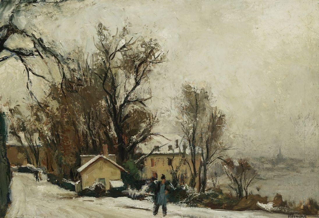 Paysage de neige, huile sur toile signée, 37x54 cm