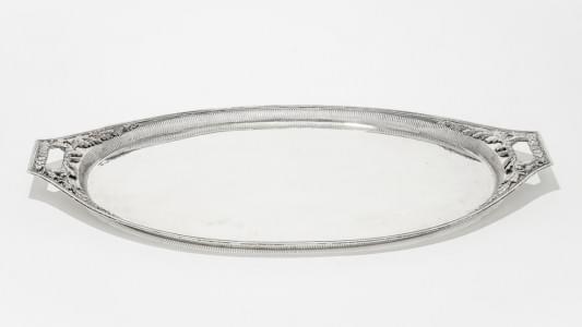 156. Grand plateau de service ovale à bordure ajourée de cannelures e...