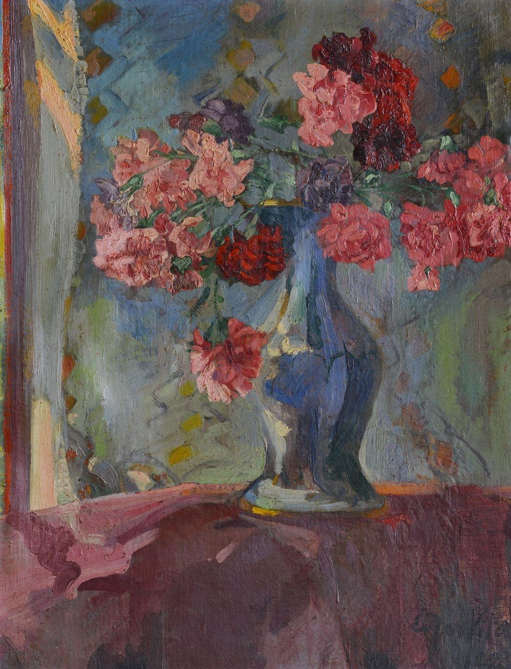 Œillets d'Engadin, huile sur carton, 68x52 cm