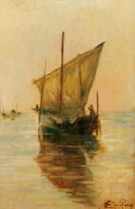 Barque de pêcheur à Venise, huile sur panneau, signée, 32x21 cm