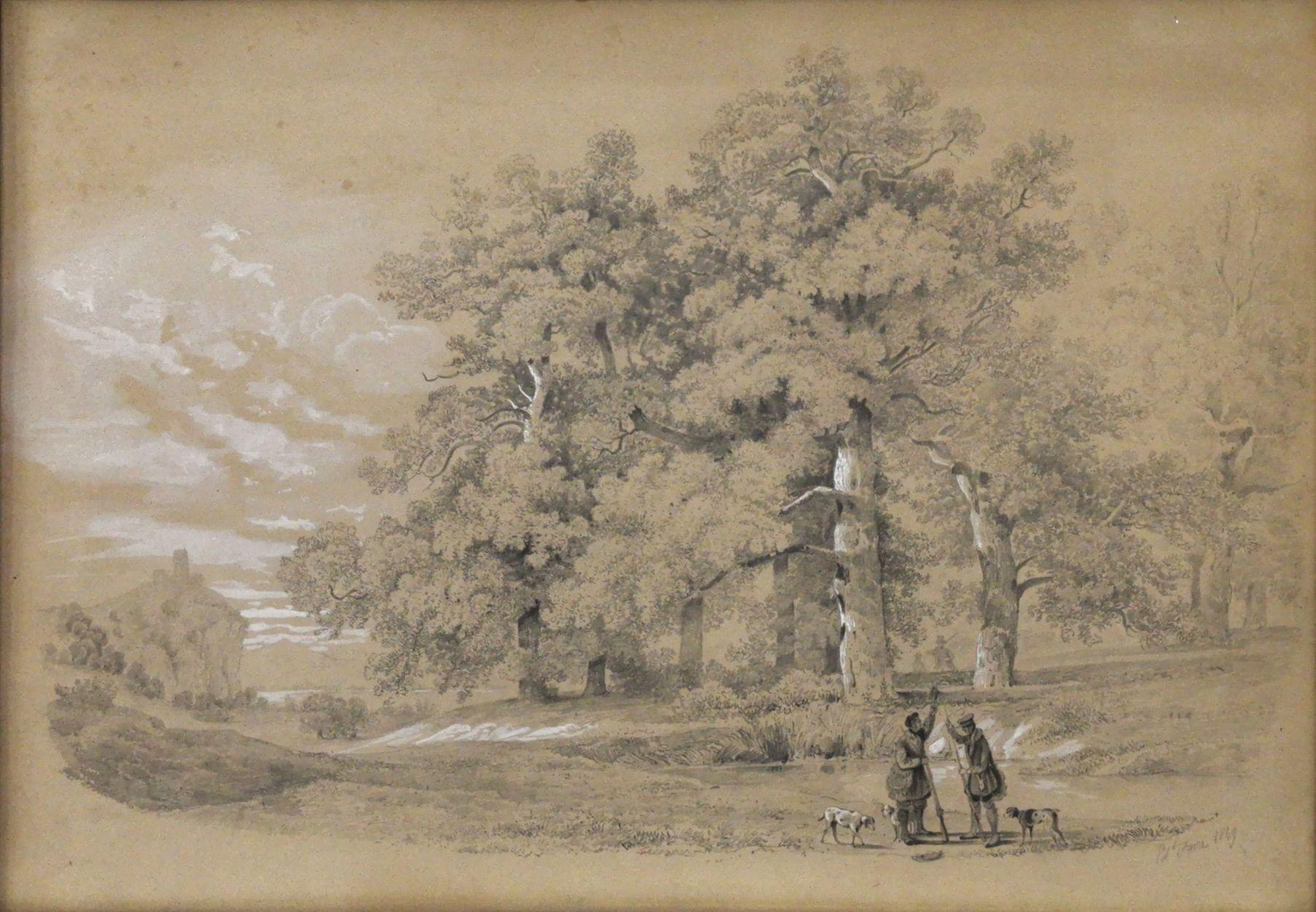 Chasseurs, mine de plomb sur papier, signée et datée 1849, 32x45 cm. Lot vendu au profit de l'association Frères de nos Frères