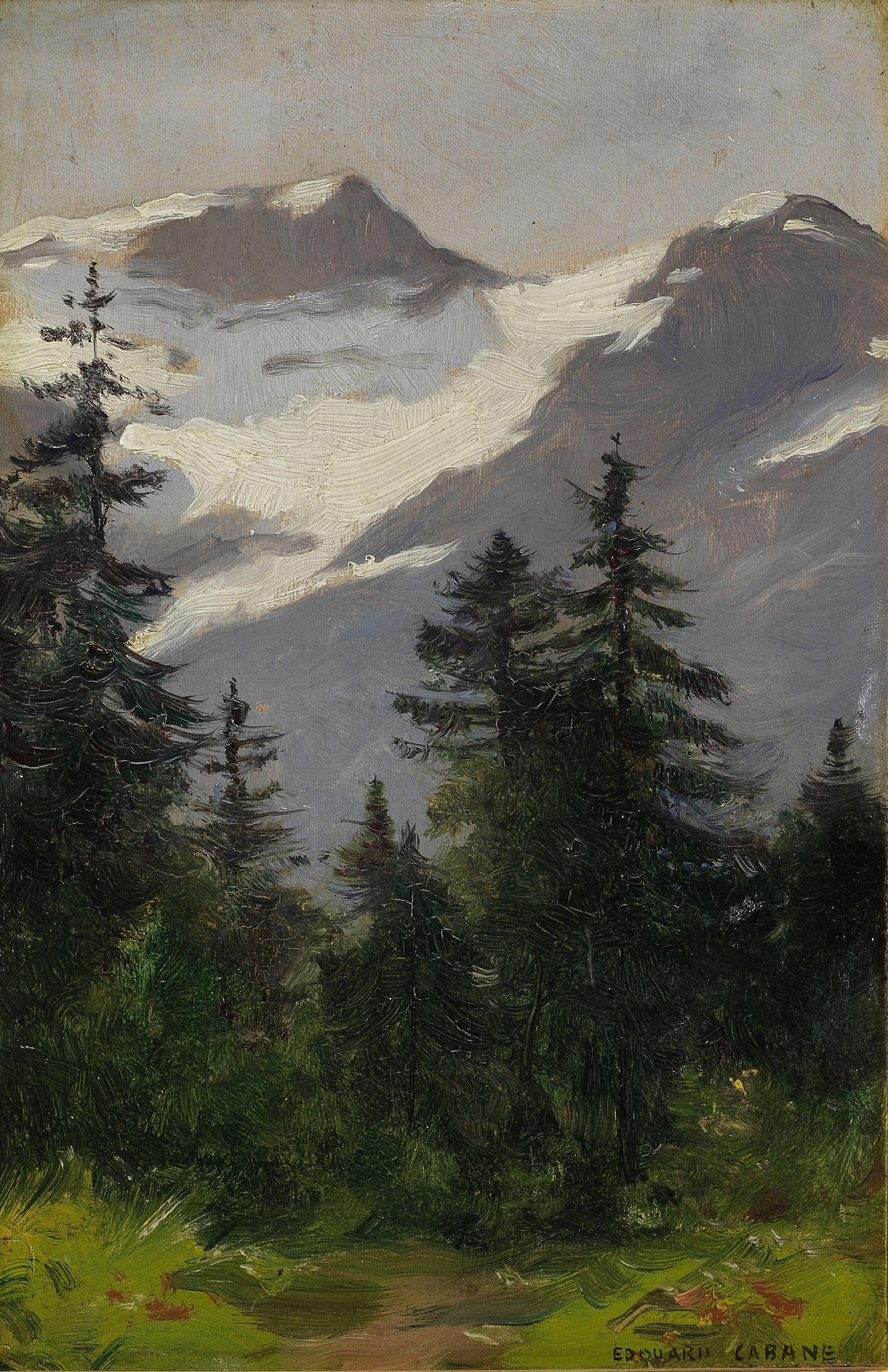 Vue de montagne, huile sur panneau, signée, 34x16 cm