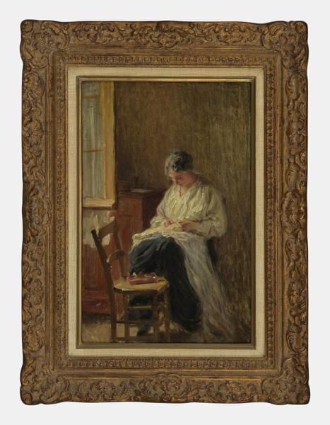 Portrait de sa mère, huile sur panneau, signée et datée 1918, 33,5x21 cm