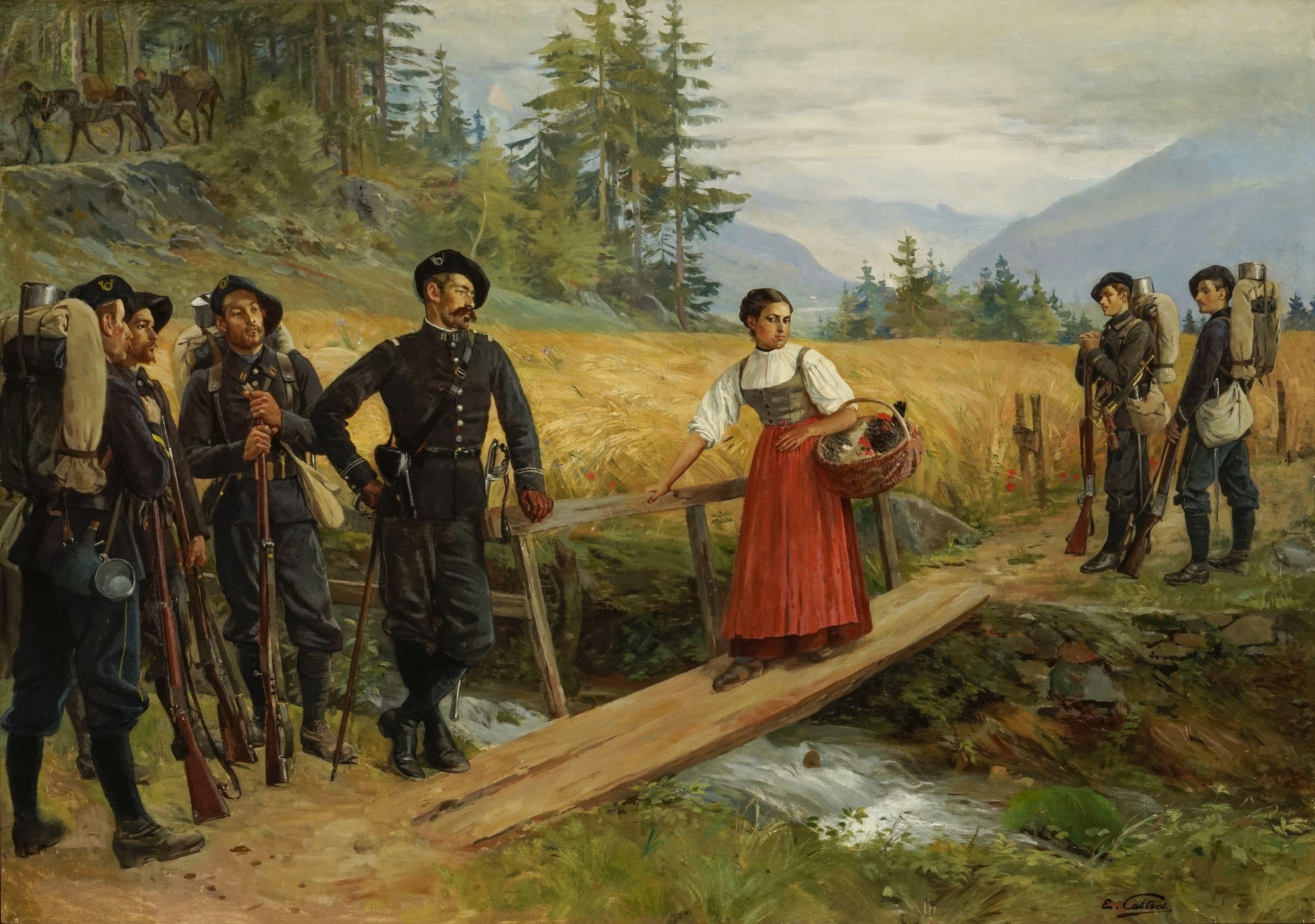 Idylle sous le sapin, huile sur toile, signée et datée 1884, int...