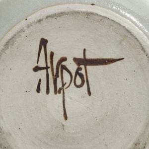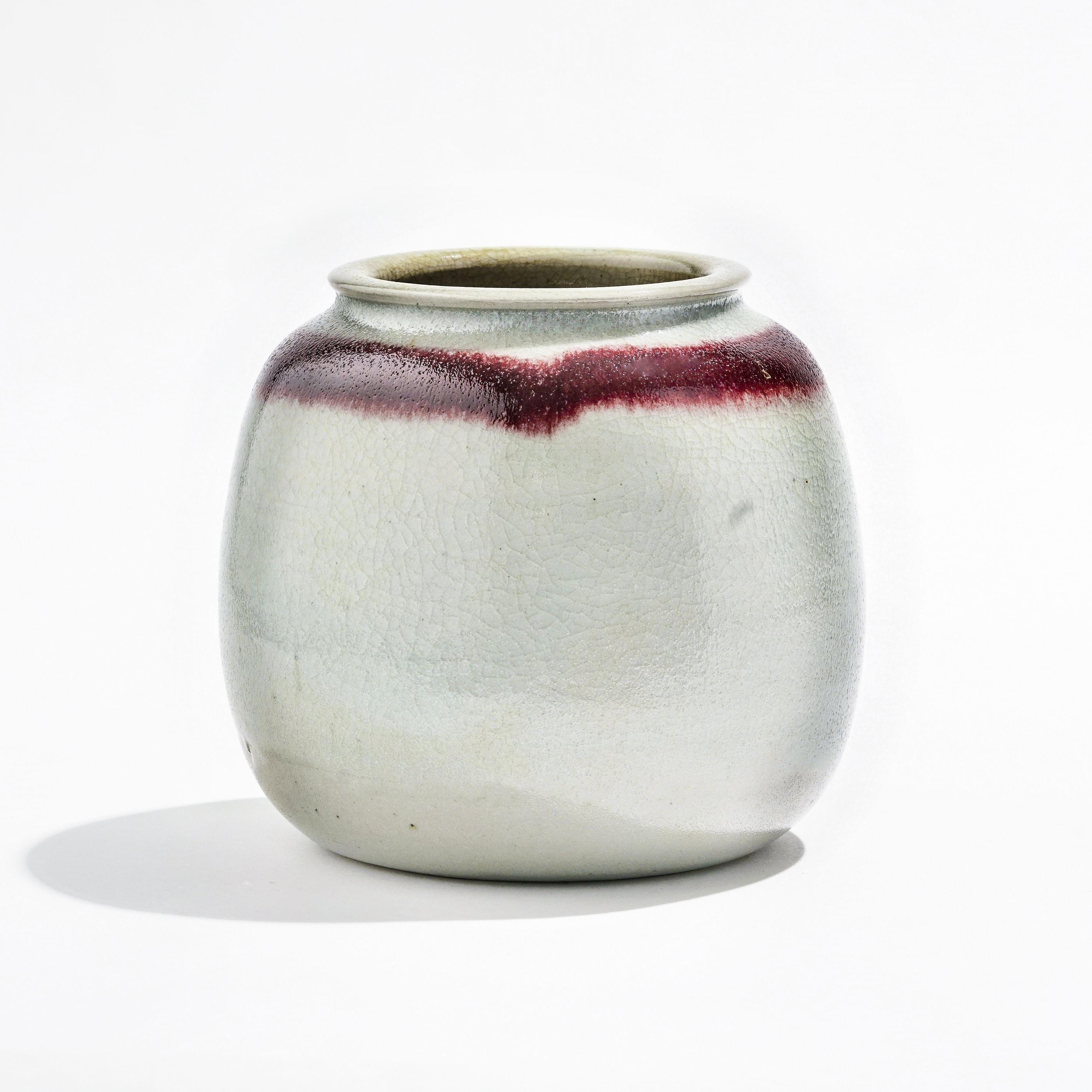 Artpot, céramique à engobe grise et bandeau rouge, H 12 cm