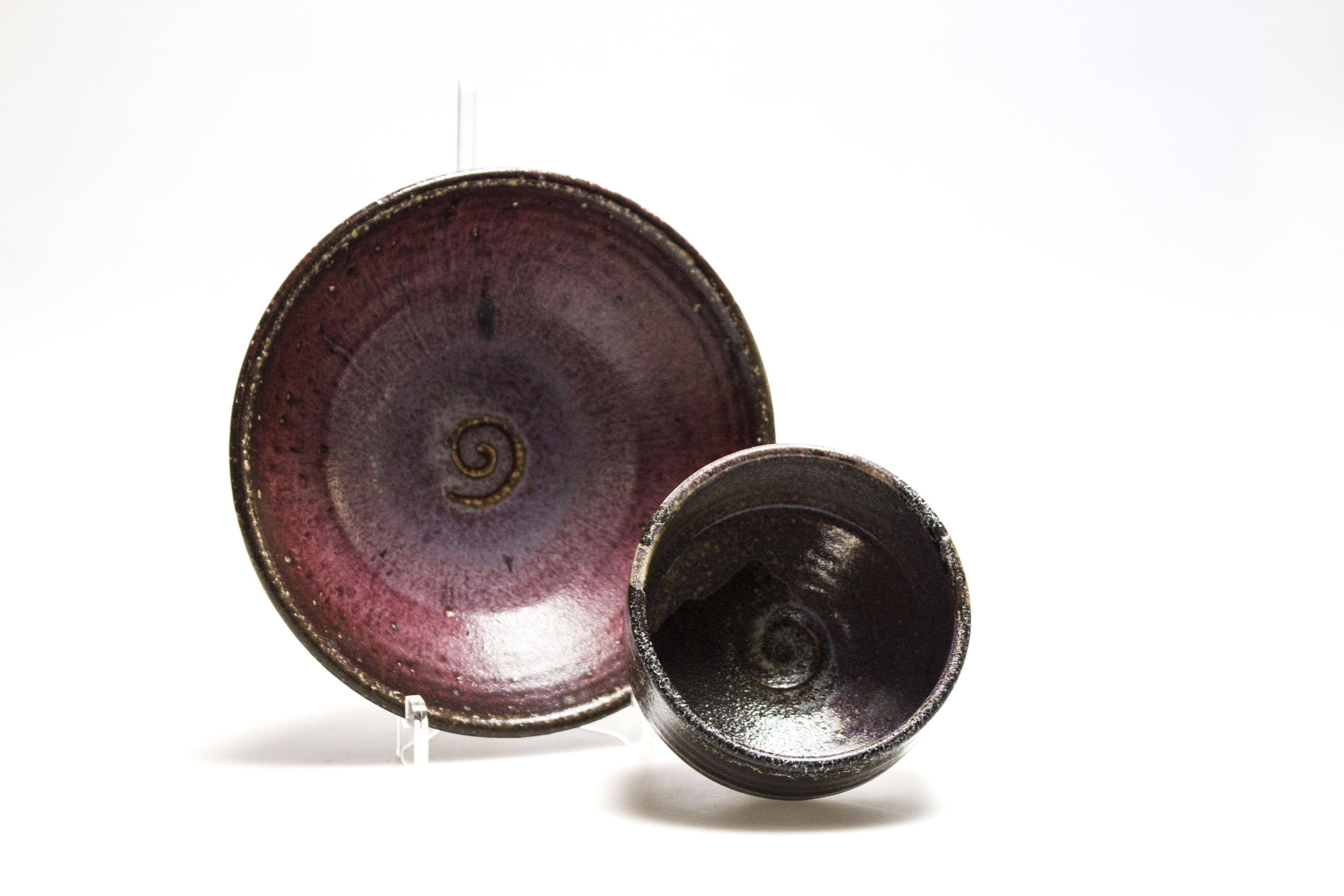 Une coupe et un bol, grès émaillé aubergine, D 12 et 22 cm