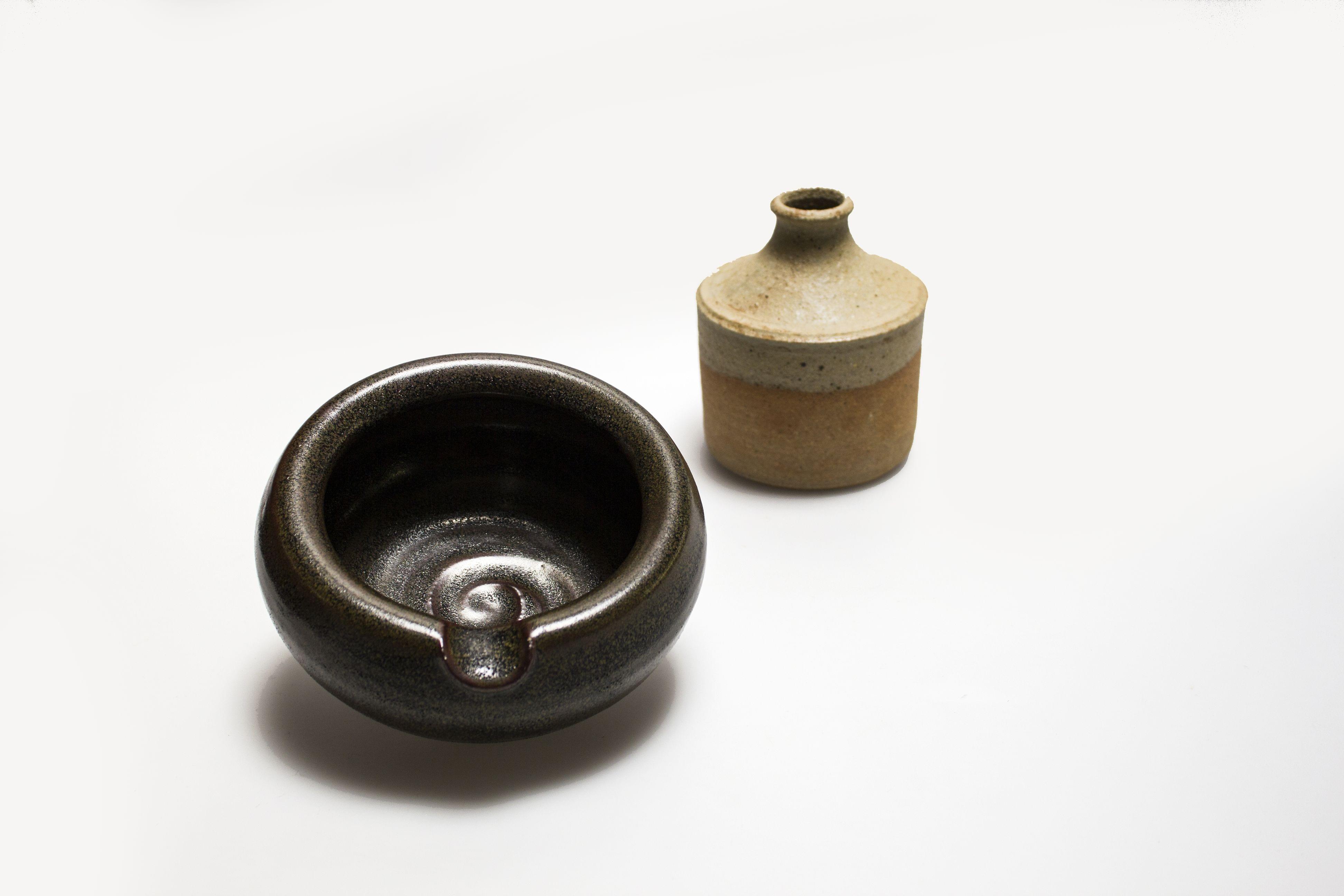 Trois soliflores et un vase, grès, H de 6 à 10 cm