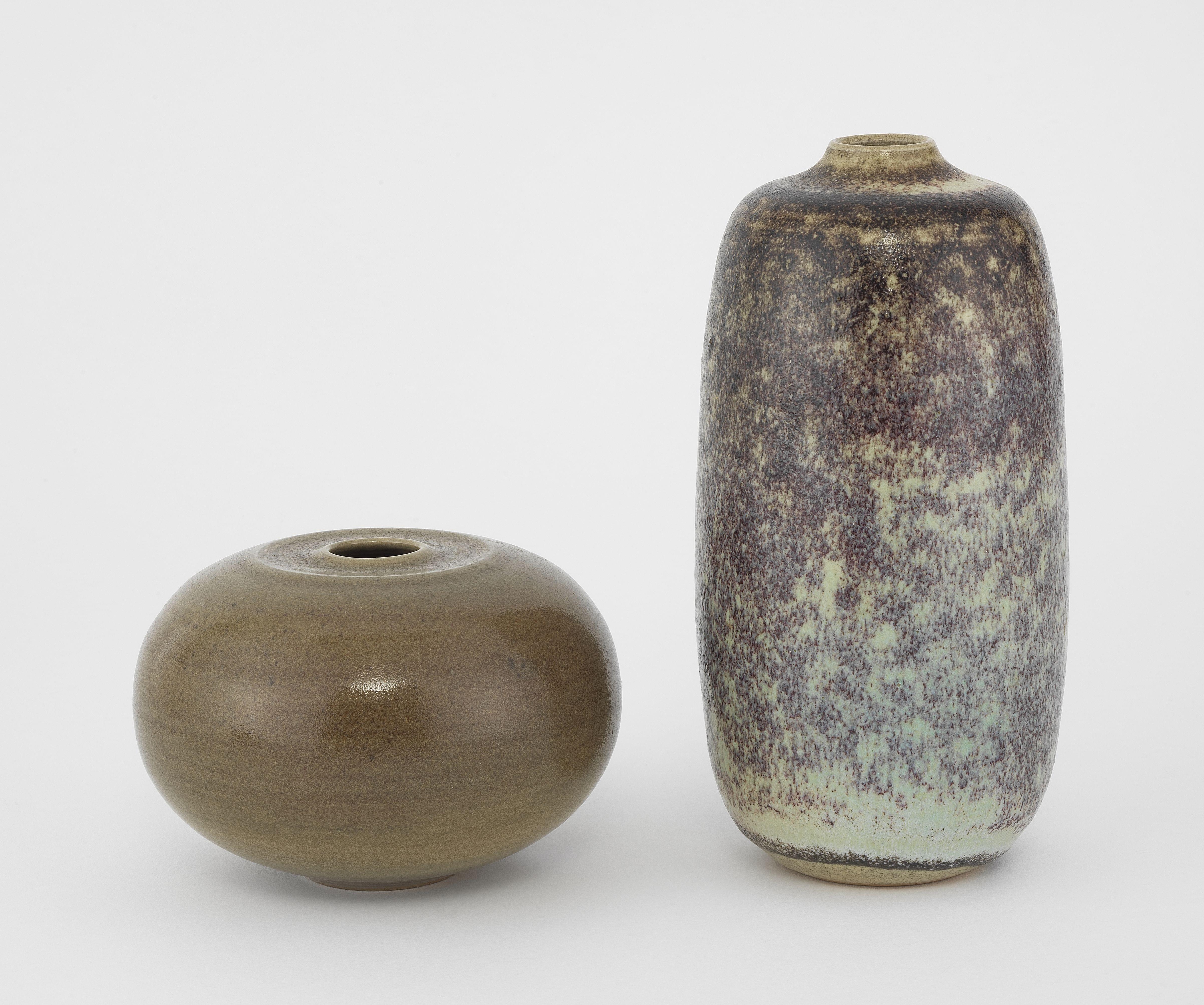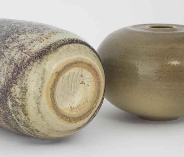 Deux bouteilles, grès émaillé bleu, signées, H 16 et 27 cm