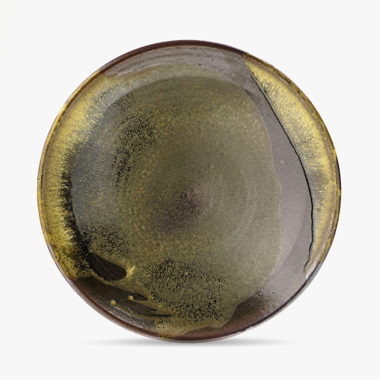 Vase boule panse aplatie, grès brun à taches grises, D 16 cm
