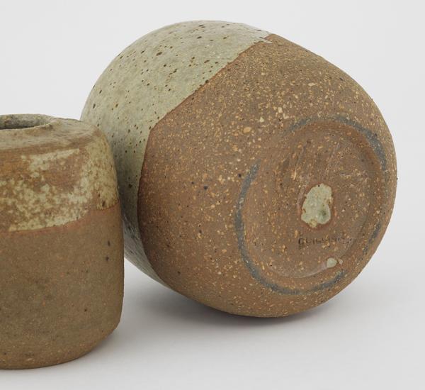Deux vases, grès émaillé brun, signés, H 7 et 11cm