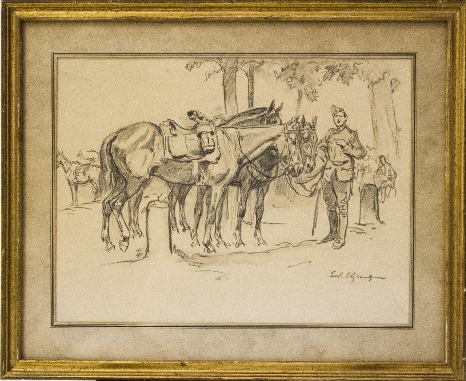 Paysannes et militaire, huile sur toile, signée, 70x99 cm