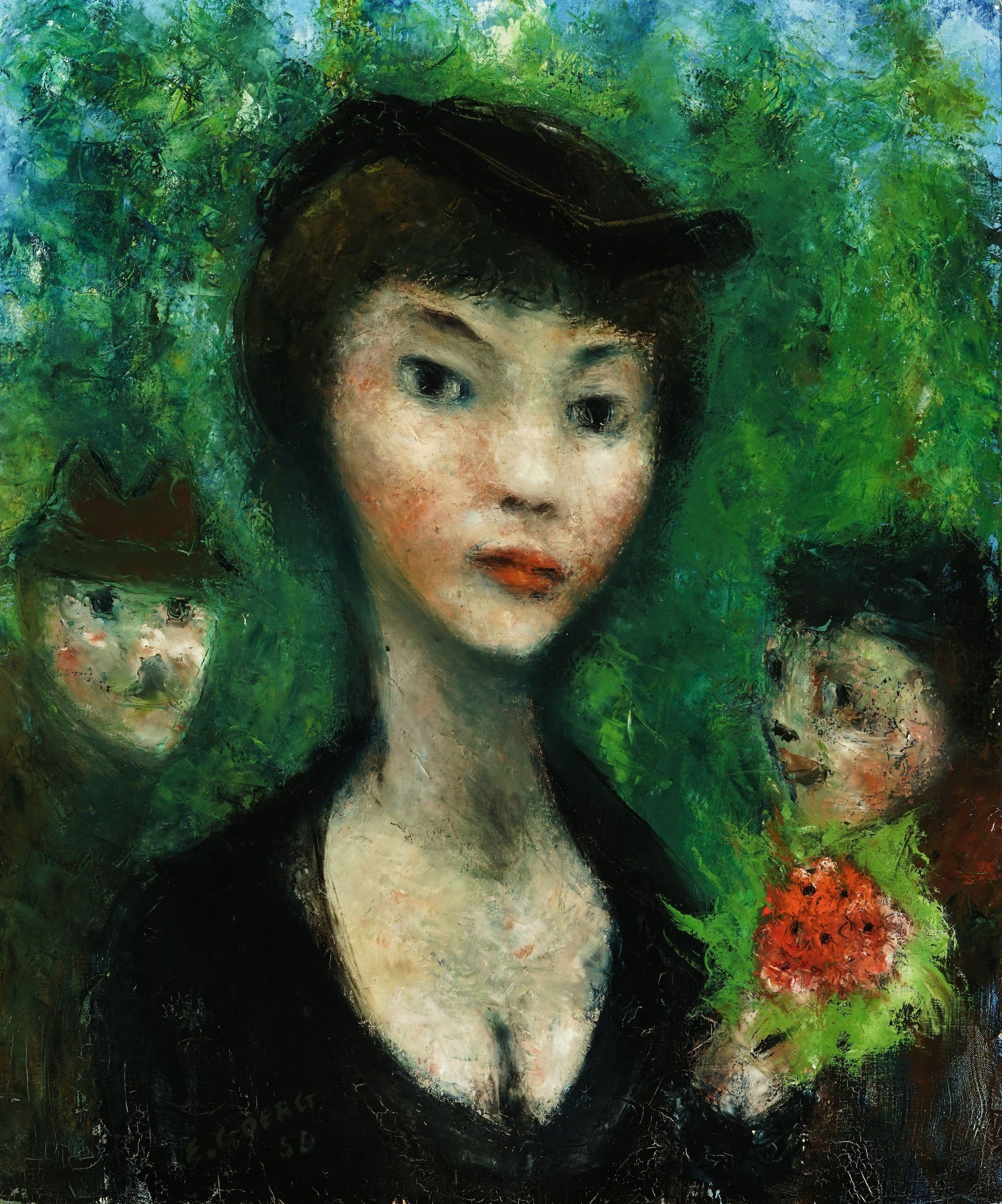 Portrait, huile sur toile, signée et datée 50, 55x45 cm