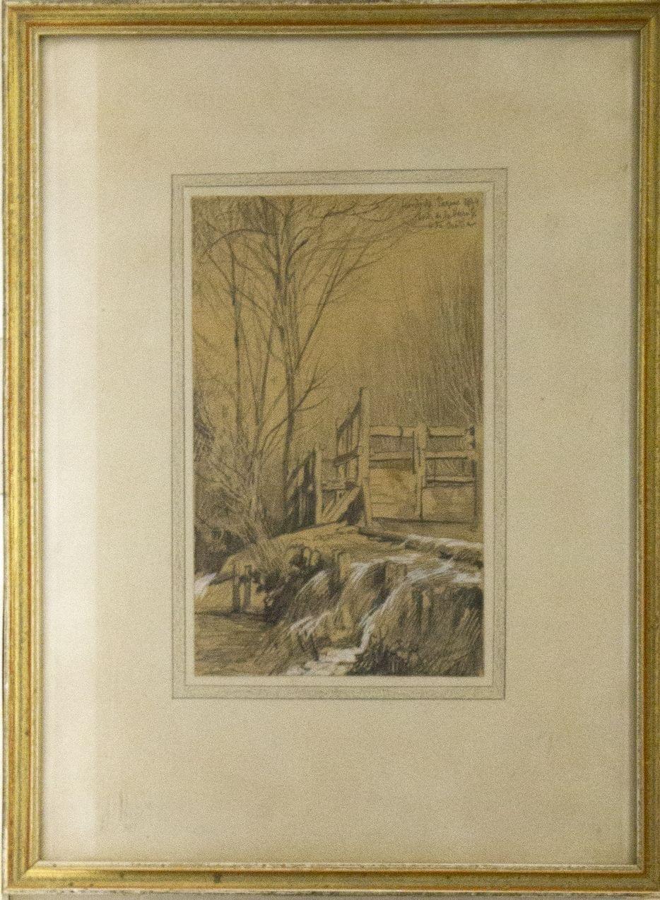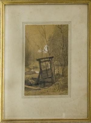 Deux vues lacustres, paire de mines de plomb et gouache sur papier, signées, 17x11 cm et 15x10 cm