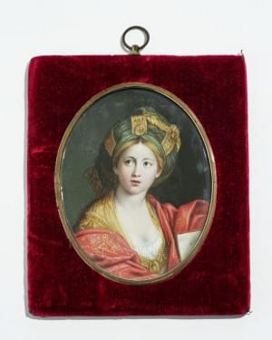 Leda et Le Cygne, céramique émaillée polychrome, signée, 48x51x1...