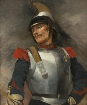 Officier des dragons, huile sur toile signée, 60x48 cm