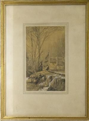 Deux vues lacustres, paire de mines de plomb et gouache sur papi...
