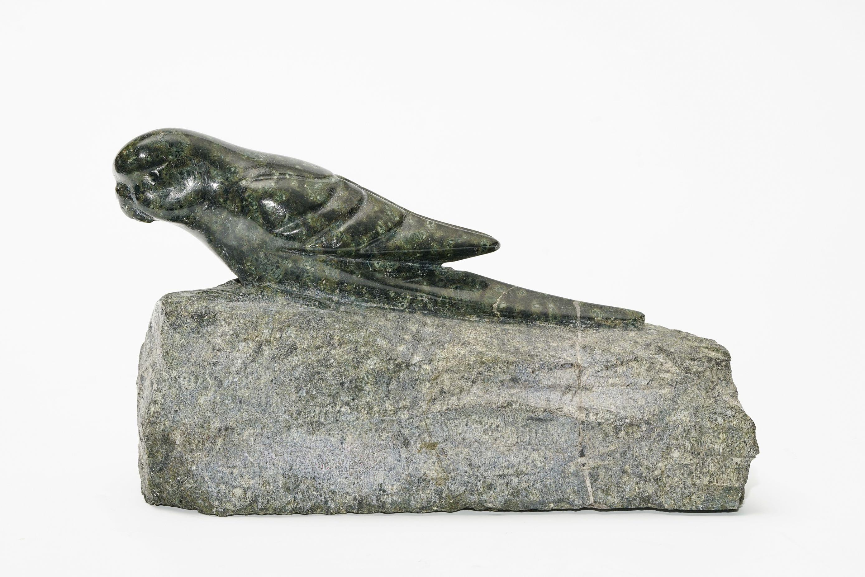 Perruche, taille directe sur marbre, signature apocryphe, L 23 cm