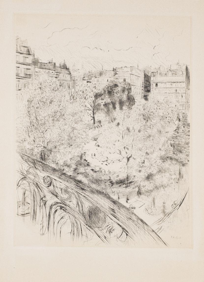 Le square vintimille, pointe sèche, signée dans la planche, 33x25 cm