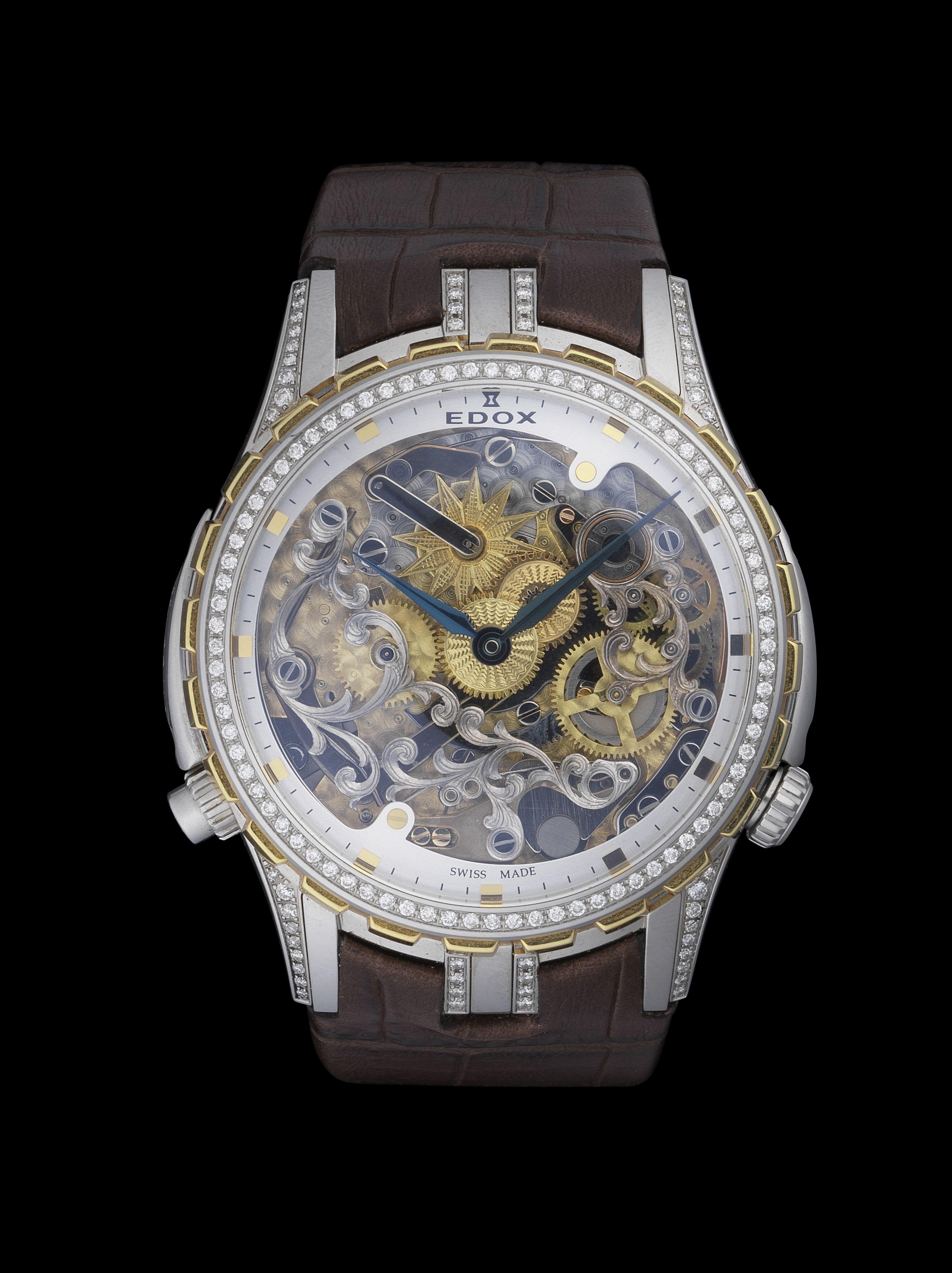 159. Edox, Sea Dubai, montre ronde automatique sertie de diamants avec une répétition des 5 minutes