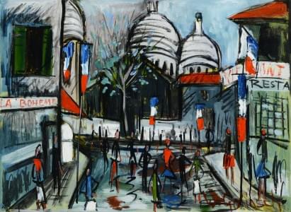Vue du Sacré Coeur, huile sur pavatex, signée, 59x79 cm