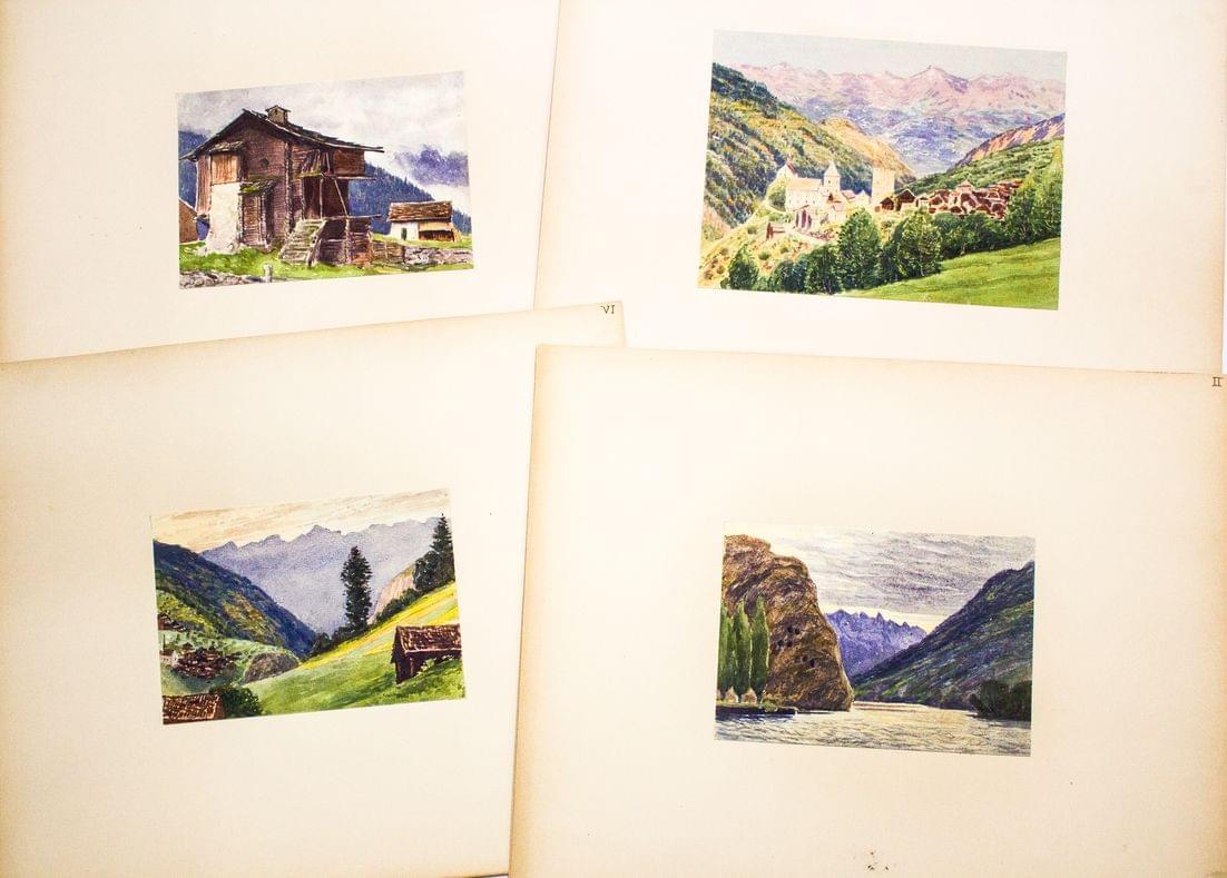 Vues du Valais, important ensemble d'aquarelles dans un carton