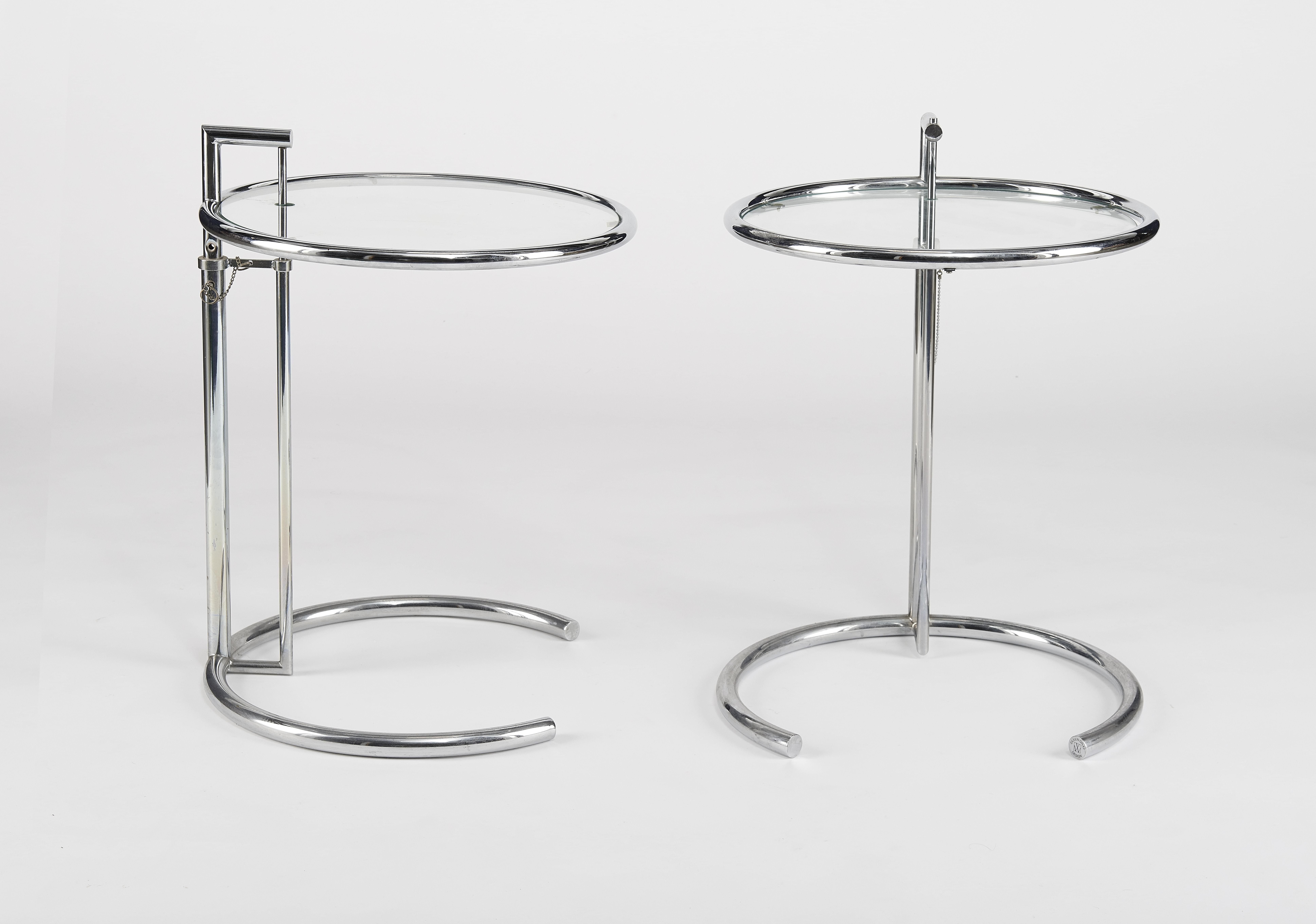 Table d'appoint ajustable E 1027, acier chromé et verre, H 75 cm